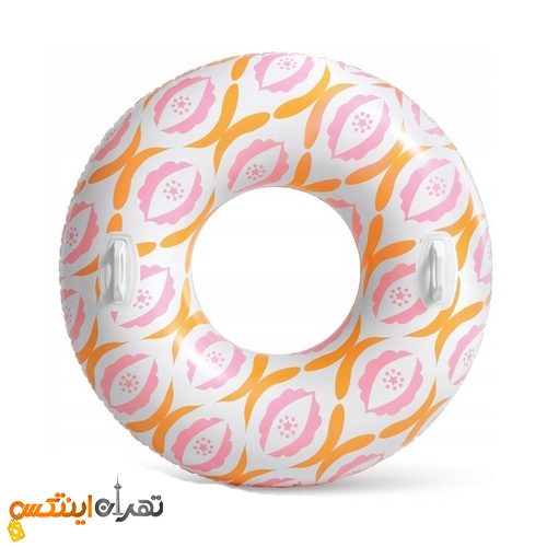 حلقه شنا بادی اینتکس دستگیره دار طرح دار از زیباترین انواع حلقه شنا بادی اینتکس است که با طراحی فوق العاده مورد توجه افراد قرار دارد. این حلقه شنا بادی برای استفاده سنین نوجوان مناسب بوده و یکی از محبوب ترین گزینه ها به شمار می رود. طرح های زیبای روی بدنه این محصول به همراه برخورداری از دستگیره های کاربردی موجب شده است تا این محصول به فروش بالایی برسد. این حلقه شنا بادی زمینه ای به رنگ سفید دارد که بر روی آن تصاویر جالبی به رنگ صورتی و نارنجی موجود است که باعث بسیار زیبا شدن این حلقه شنا بادی شده است.