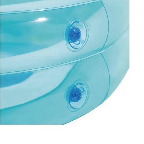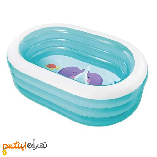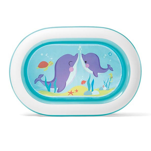 این وان بادی به رنگ آبی شفاف طراحی شده است و در کف آن نیز تصاویر جذاب و زیبایی از دو دلفین فانتزی و رنگی وجود دارد که زیبایی این محصول را دوچندان می کند. دیواره این وان بادی به صورت پهن طراحی شده است که انعطاف بالایی داشته و نرم و راحت می باشد. دیواره به صورت سه رینگ بوده و هر یک از لایه ها نیز دارای دریچه باد مجزا هستند که می توانید به راحتی آن را راه اندازی نمایید. این محصول به سادگی توسط یک پمپ باد در زمانی کوتاه راه اندازی شده و آماده استفاده خواهد شد. این محصول را می توانید به راحتی در فضاهای بیرون از منزل و یا در داخل حمام راه اندازی کرده و پس از استفاده نیز جمع کنید تا فضای کمی را اشغال کند.